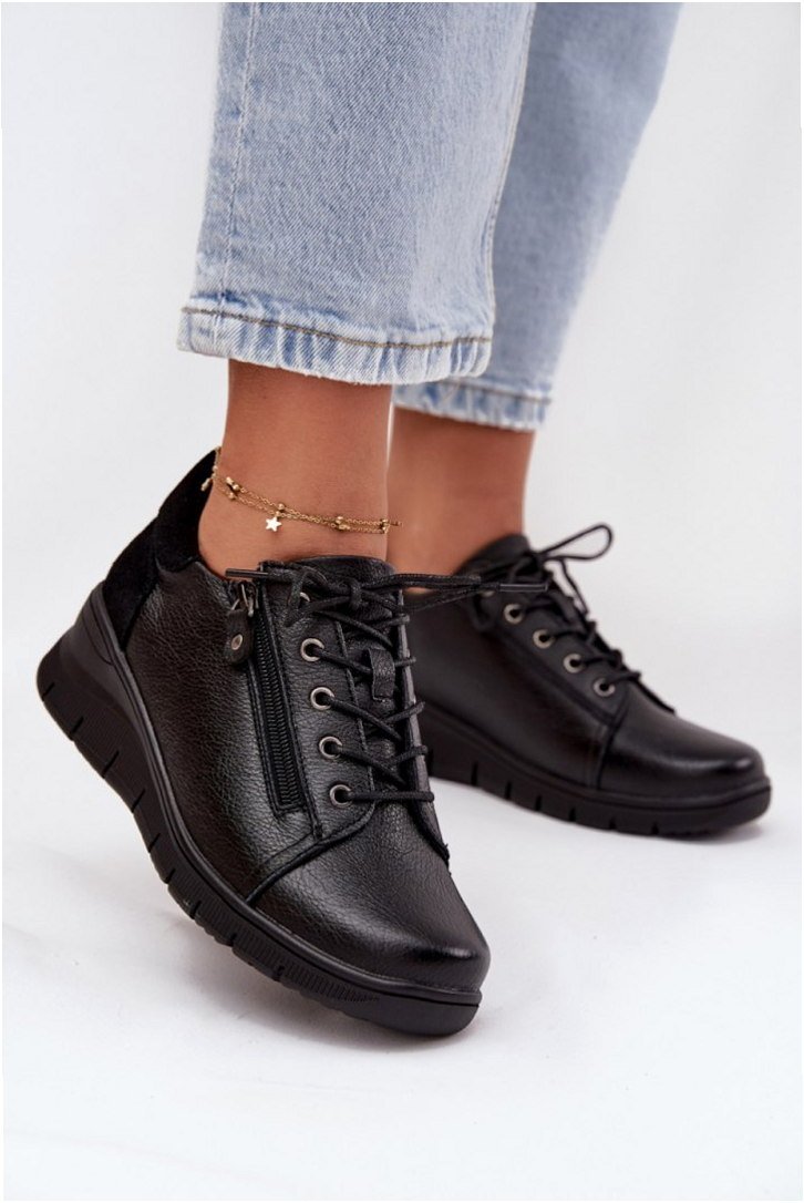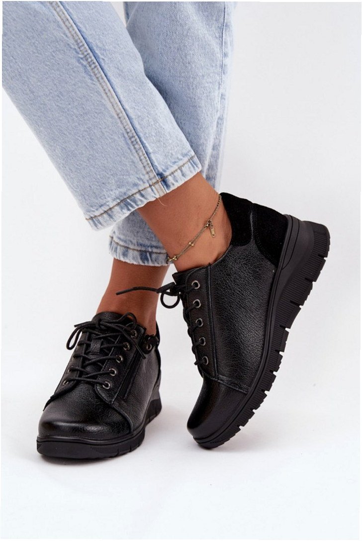 Vinceza Półbuty Skórzane | Model 39964 Black Damskie