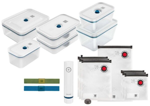 ZWILLING Fresh & Save Starter Set for food storage. Includes containers, vacuum bags, and sealing roll. BPA-free material.